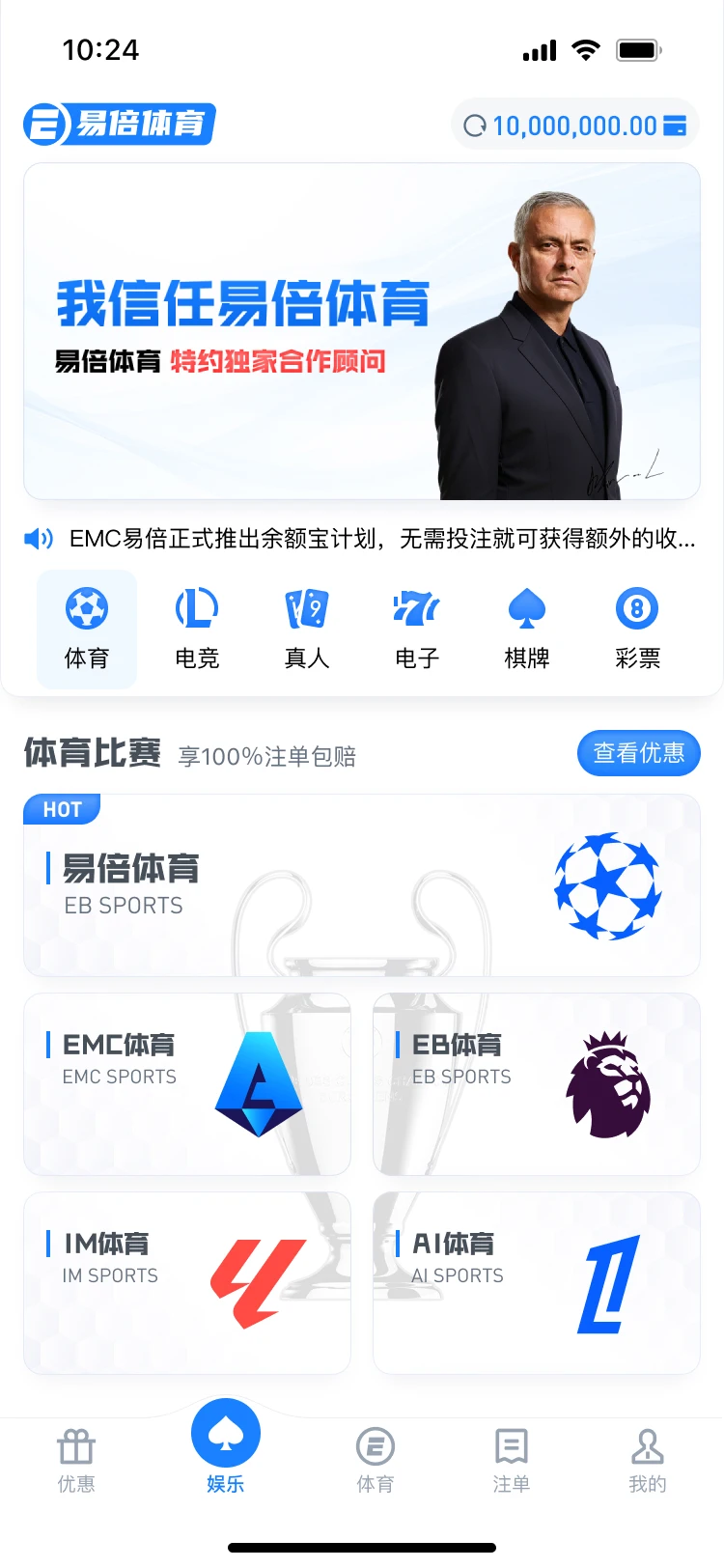 活动期间,投易倍/EB体育场馆的早盘2025-2026五大联赛冠军盘注单,即可获得投注额50%的返还彩金,最高1288元!详情请查看官网活动页面。