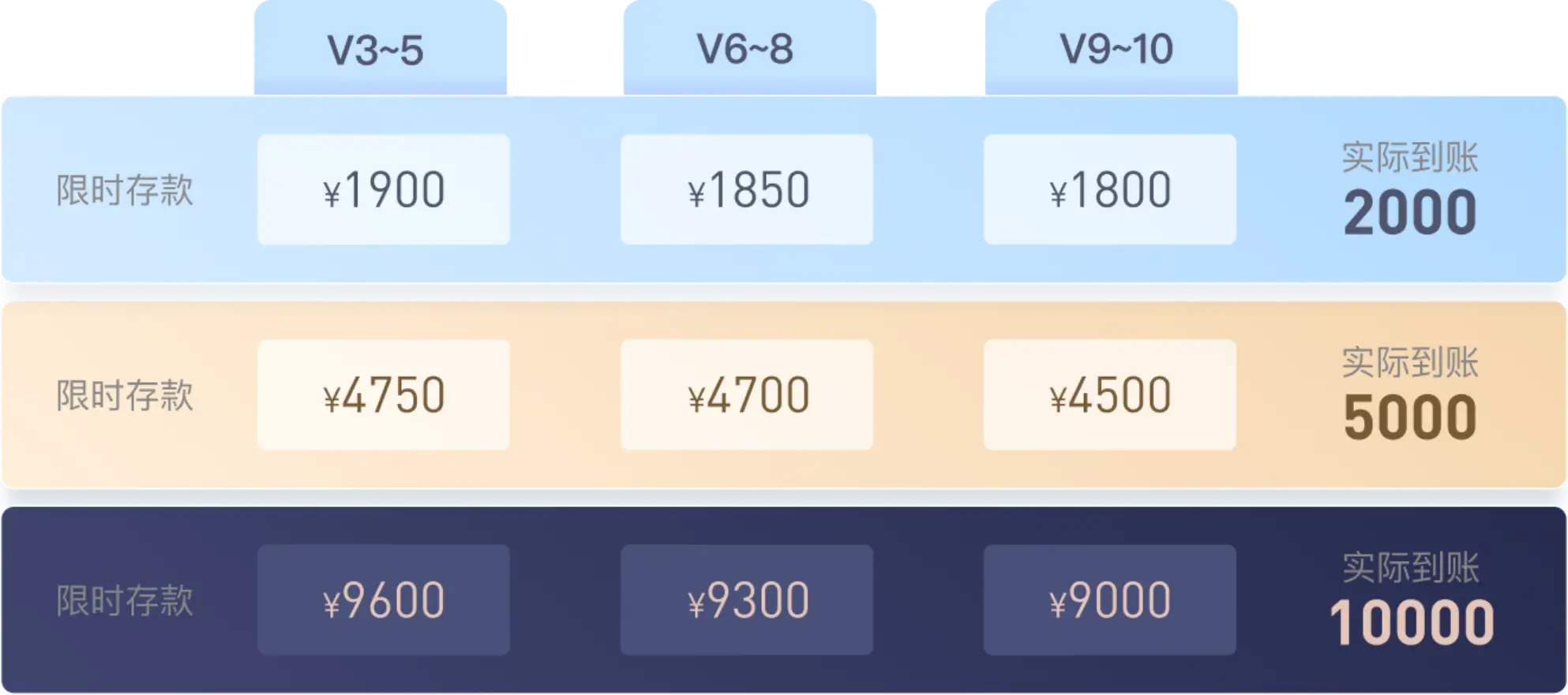 3.每个会员在会员日当天仅享受一次指定金额存款折扣。